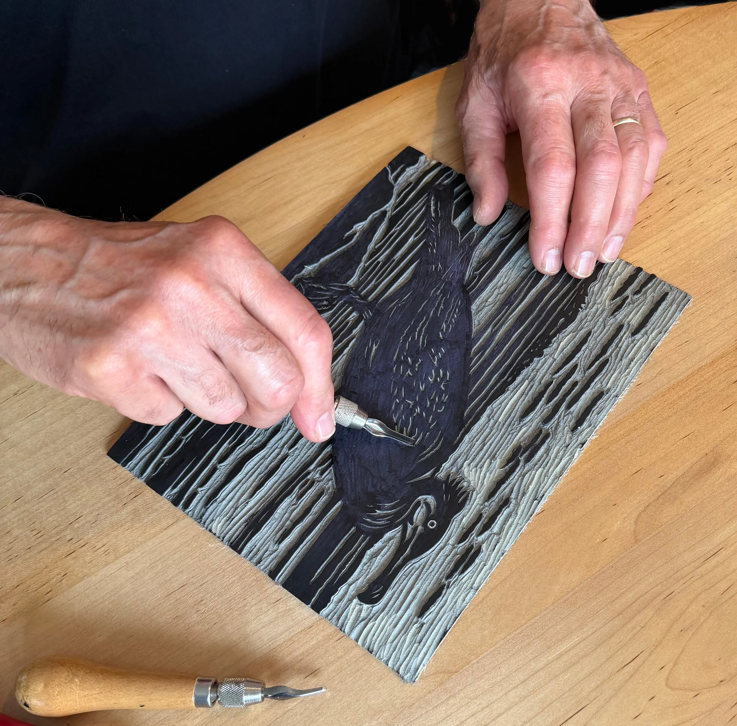 These lino block prints are from original designs, carved and printed by hand, using archival ink and paper. Each print is unique and part of a limited edition of 50. All prints are numbered and signed.